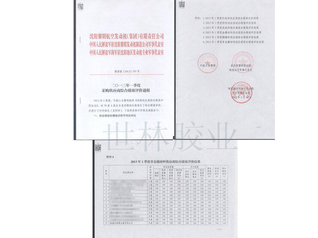世林膠業(yè)獲得某發(fā)動(dòng)機(jī)集團(tuán)公司供應(yīng)商綜合績效好評: