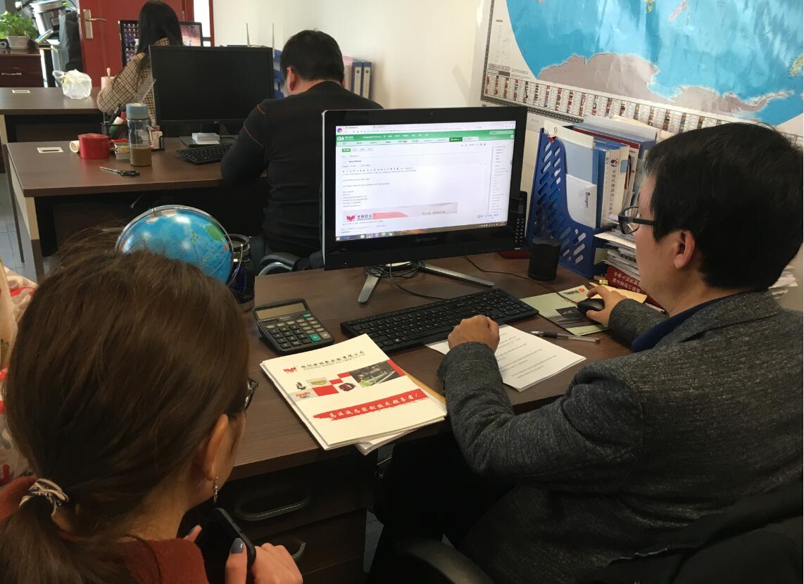 2019年3月4日下午,世林膠業(yè)的負(fù)責(zé)海外拓展的兩位同事到進(jìn)行業(yè)務(wù)學(xué)習(xí),國貿(mào)服務(wù)部的劉主任熱情周到并且詳盡的講解和演示,對(duì)世林前期開拓海外市場很有幫忙。劉主任不僅對(duì)她們進(jìn)行了面對(duì)面的進(jìn)出口收發(fā)郵件的注意事項(xiàng),并針對(duì)公司產(chǎn)品的運(yùn)輸?shù)奶厥庖,提出了一些行之有效的建議和意見,為世林膠業(yè)更快更好的開拓國際市場提供了非常貼身的服務(wù)。