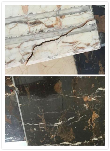 近丹東盧總接到一個(gè)酒店地板維護(hù)保養(yǎng)的工作,本以為是一件簡單的清潔打磨的工作,結(jié)果到現(xiàn)場一看,傻眼了!大理石的地面、臺(tái)階跟柱面,很多因?yàn)楸pB(yǎng)不好,大理石地面裂縫斷開,大理石臺(tái)階也斷裂了,怎么辦?不弄好一分沒賺還要賠,趕緊上網(wǎng)搜大理石裂縫修補(bǔ)膠,找到了株洲世林膠業(yè)的SL3214透明石材膠。一看資料這款膠主要用于臺(tái)面板的復(fù)邊粘接,也可用于石材的粘接和修補(bǔ),對貼花、拼花等具有很好的效果。和混凝土、金屬、木材、陶瓷及玻璃等均可粘接。1.固化速度快;2.和石材的附著力好;3.透明、光澤度較好、硬度高、適合淺色石、耐黃變室內(nèi)可達(dá)1年以上;4.粘度適中,不會(huì)到處流淌;5.操作方便; 6.耐磨、耐老化;7.有良好的耐候性、耐稀酸、耐稀堿、耐水;8.無毒,環(huán)保。